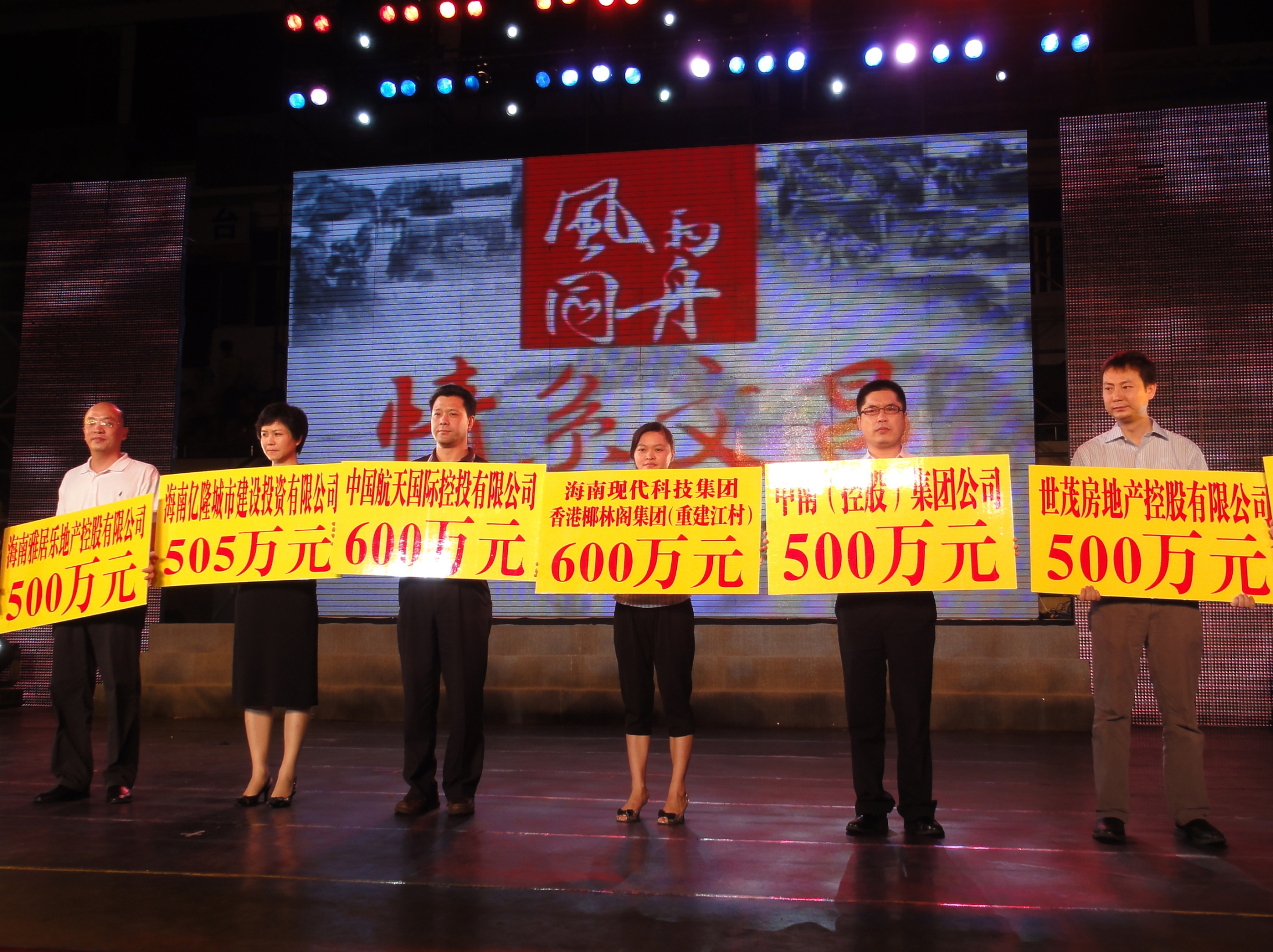 公益演出/賽事:捐助《感動海南》、《白毛女》、《開心麻花》、《珠江交響樂團》、《文昌瓊劇團》、《世界小姐吳英娜形象代言》、《中國男子排球聯(lián)賽八一男排文昌賽區(qū)賽事》等公益演出、體育賽事2000多萬元。
